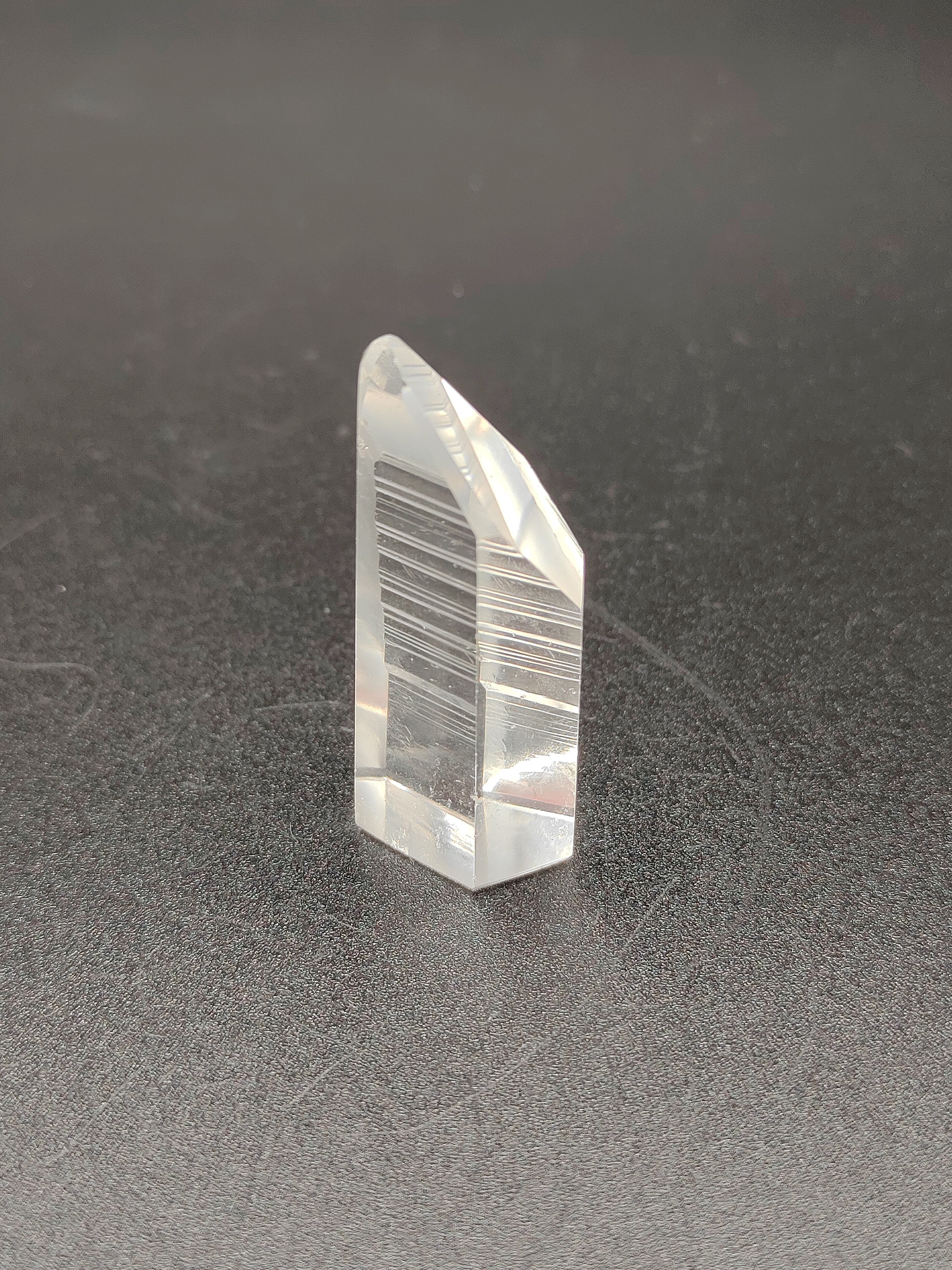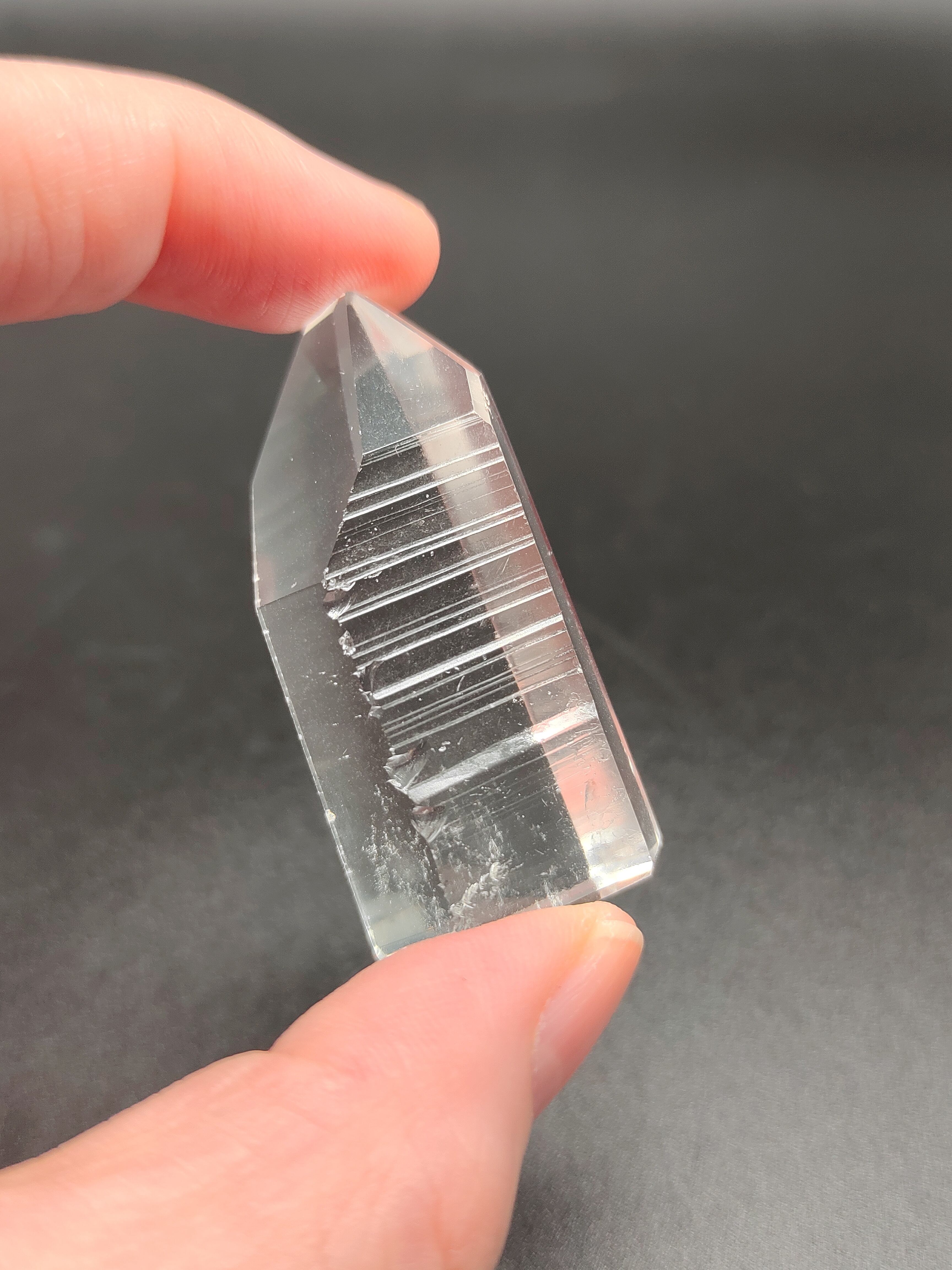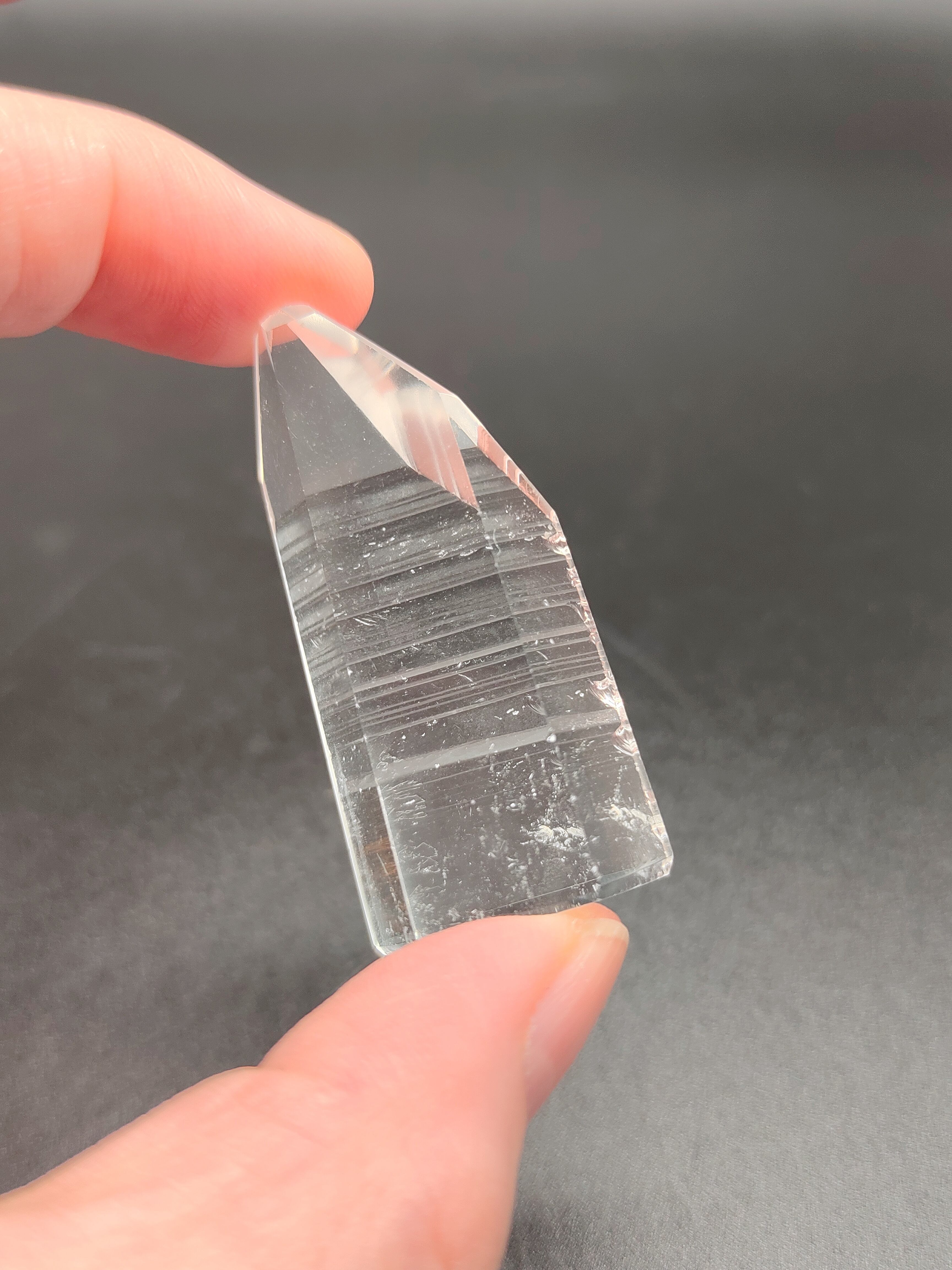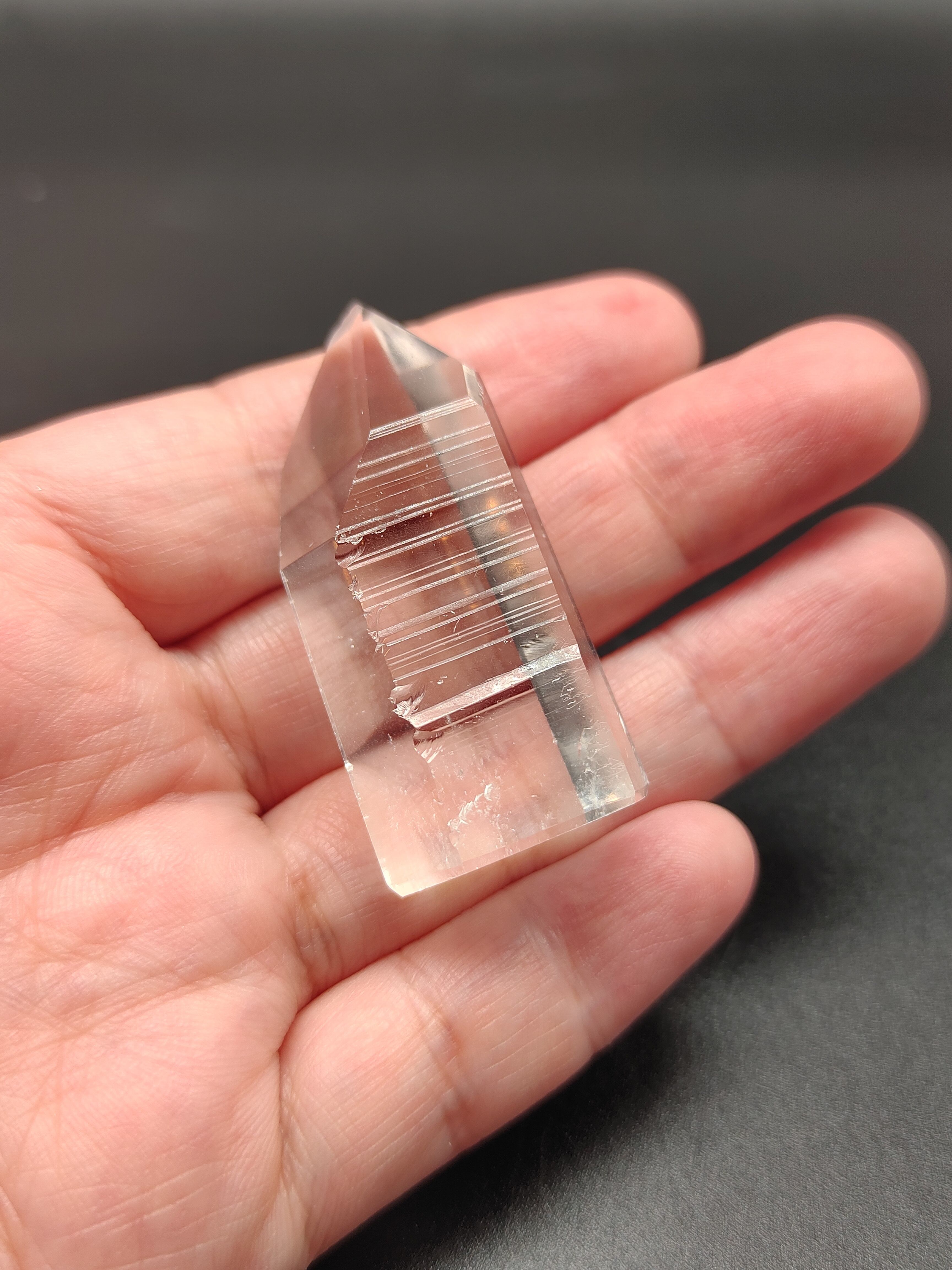 レムリアの記憶を宿す「レムリアンリッジ」と呼ばれる、天然の筋模様が複雑に織り成す美しいデザインも特徴のひとつです。レムリア大陸から来たとされる高度な文明の人々によって刻まれたとされており、過去世からのメッセージを受け取ることができるとも言われています。こちらは、透明度が高く1面に美しいレムリアンリッジを有し、ポイントとして自立します。