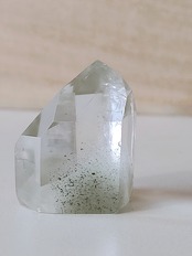 六角水晶の中にファントム(幻影)とクローライトを含んだ水晶ポイントです。