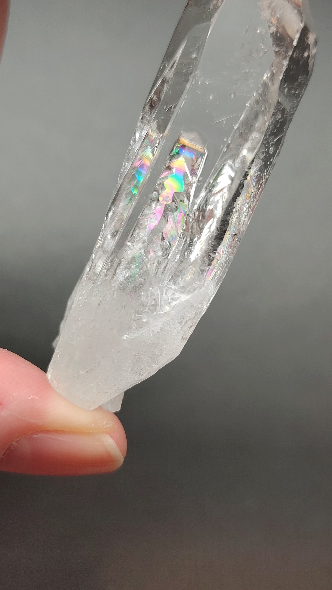 また、浄化と同時に魔除けや厄除け効果もあると言われており、身に着けて持ち歩くと邪気や魔物から持ち主を守ります。透き通る高いエネルギーで、エネルギーが頭頂まで突き抜けます。4本の中で最も透明度もエネルギーも高く、レインボーも美しい逸品でお勧めです。