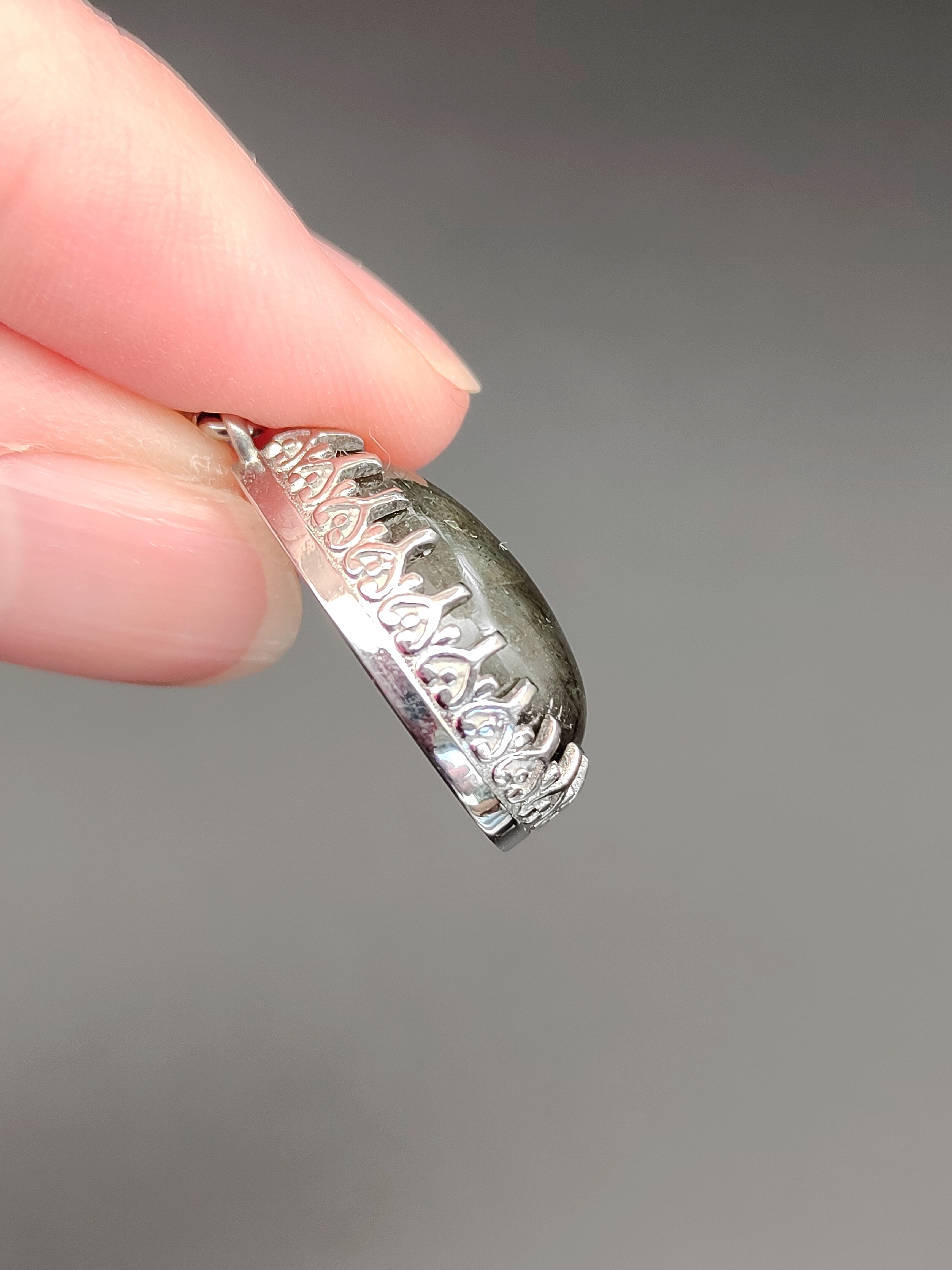 こちらはブラックラブラドライトに似た雰囲気で、ブルーのシラーが出ます。灰色ベースのラブラドライトは、女性の手元には少し重く感じますが、このPTなら、知的でスタイリッシュな都会的な女性を演出してくれるでしょう。