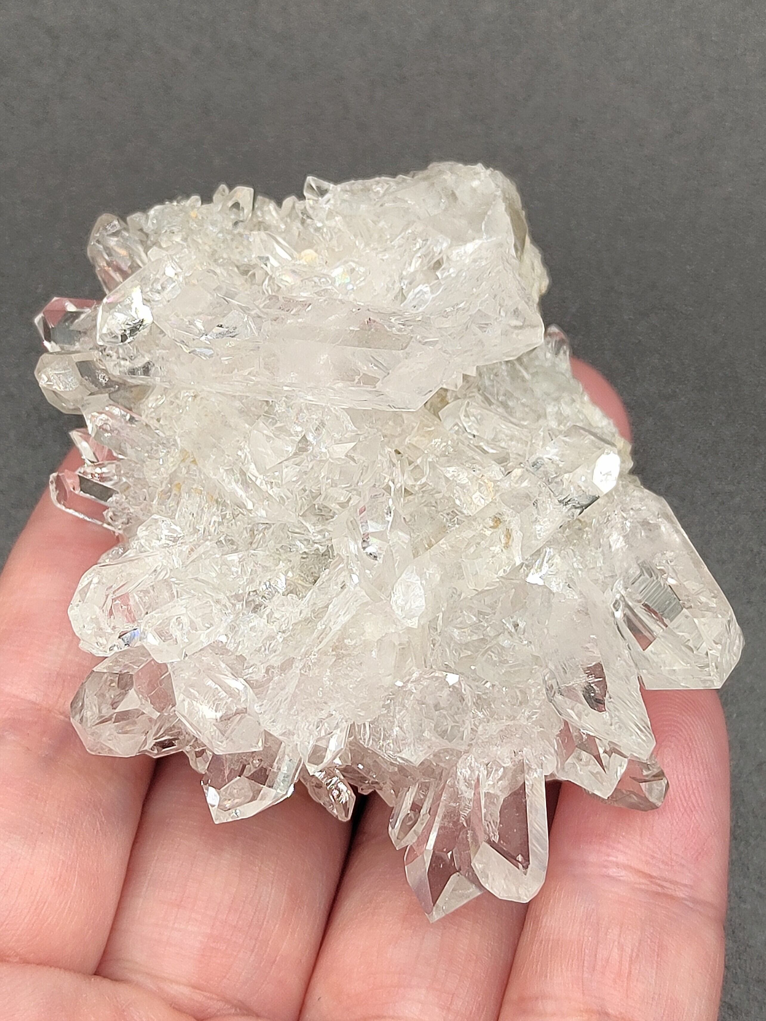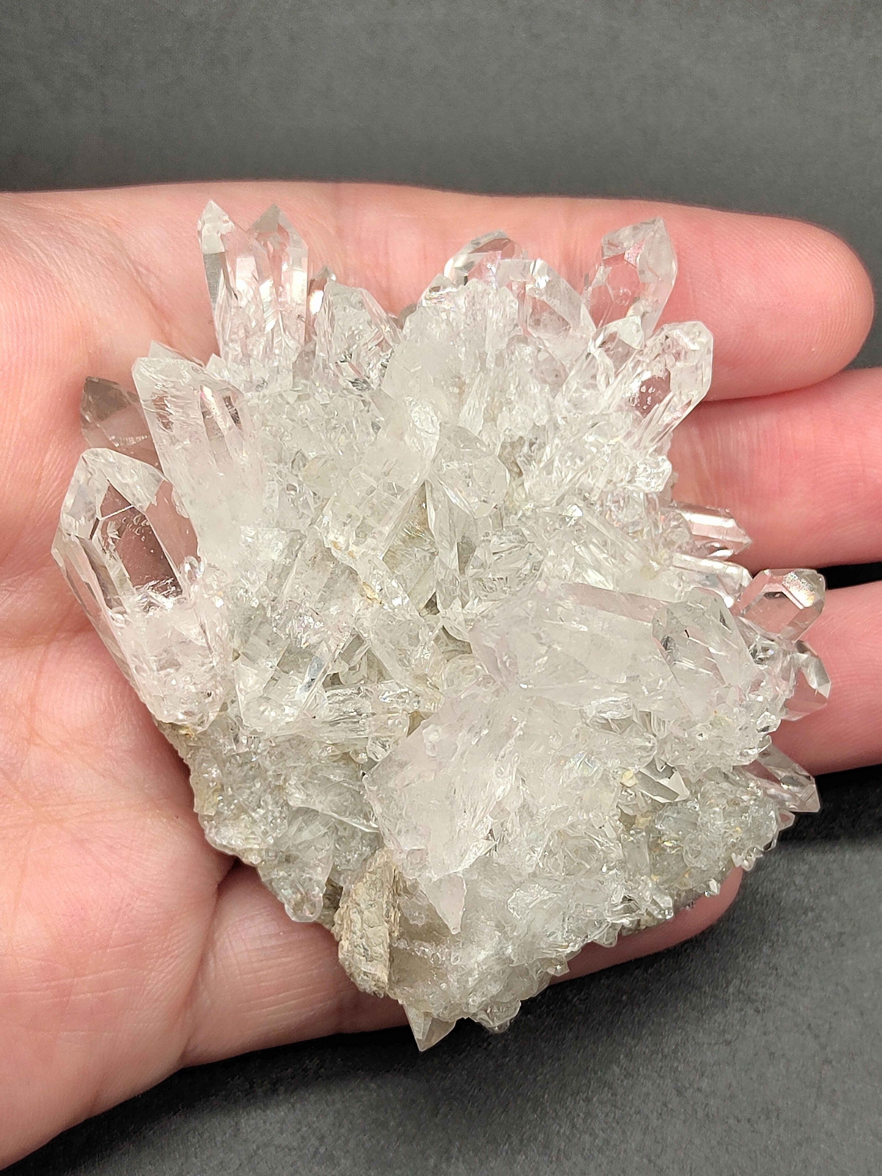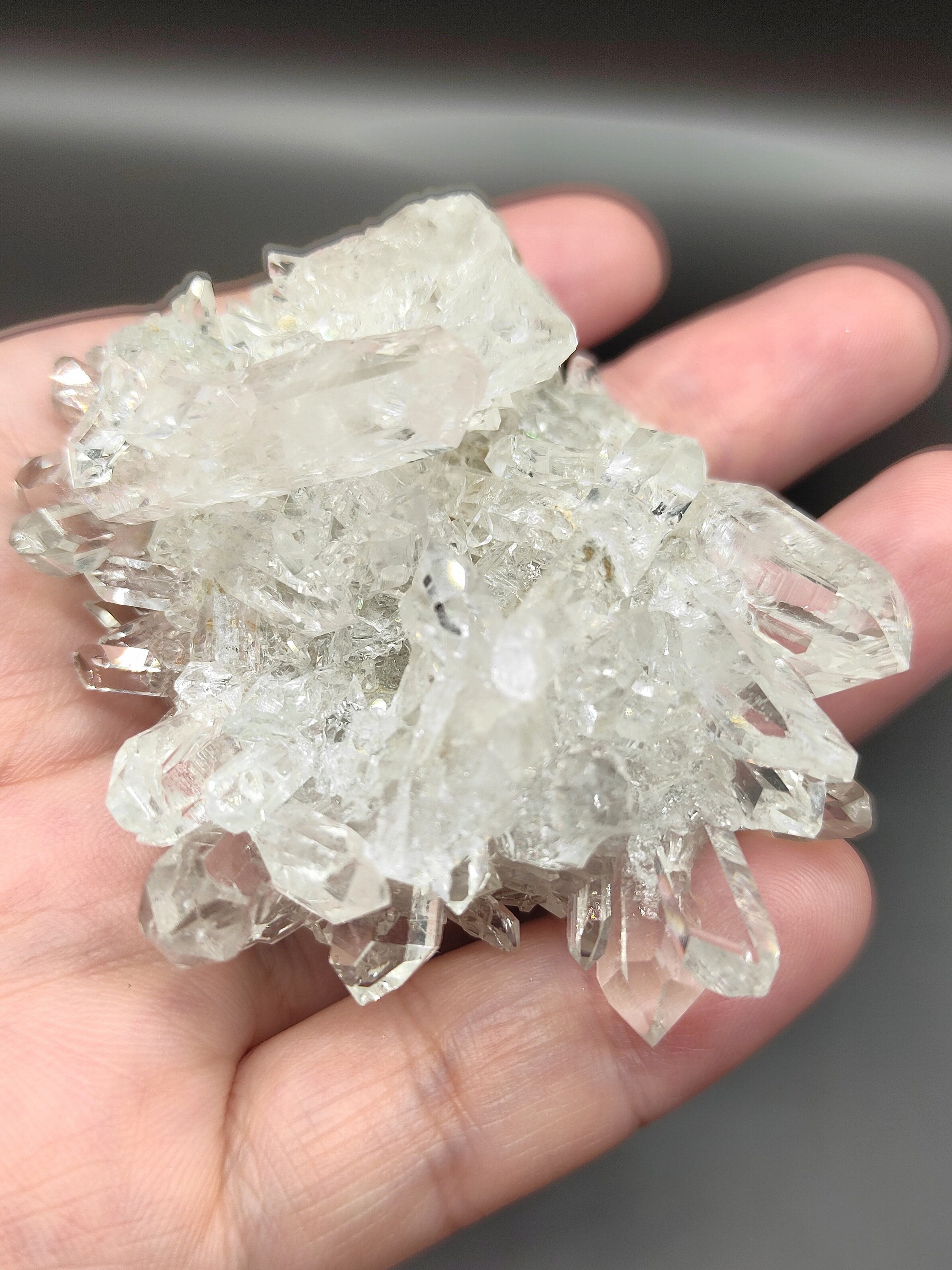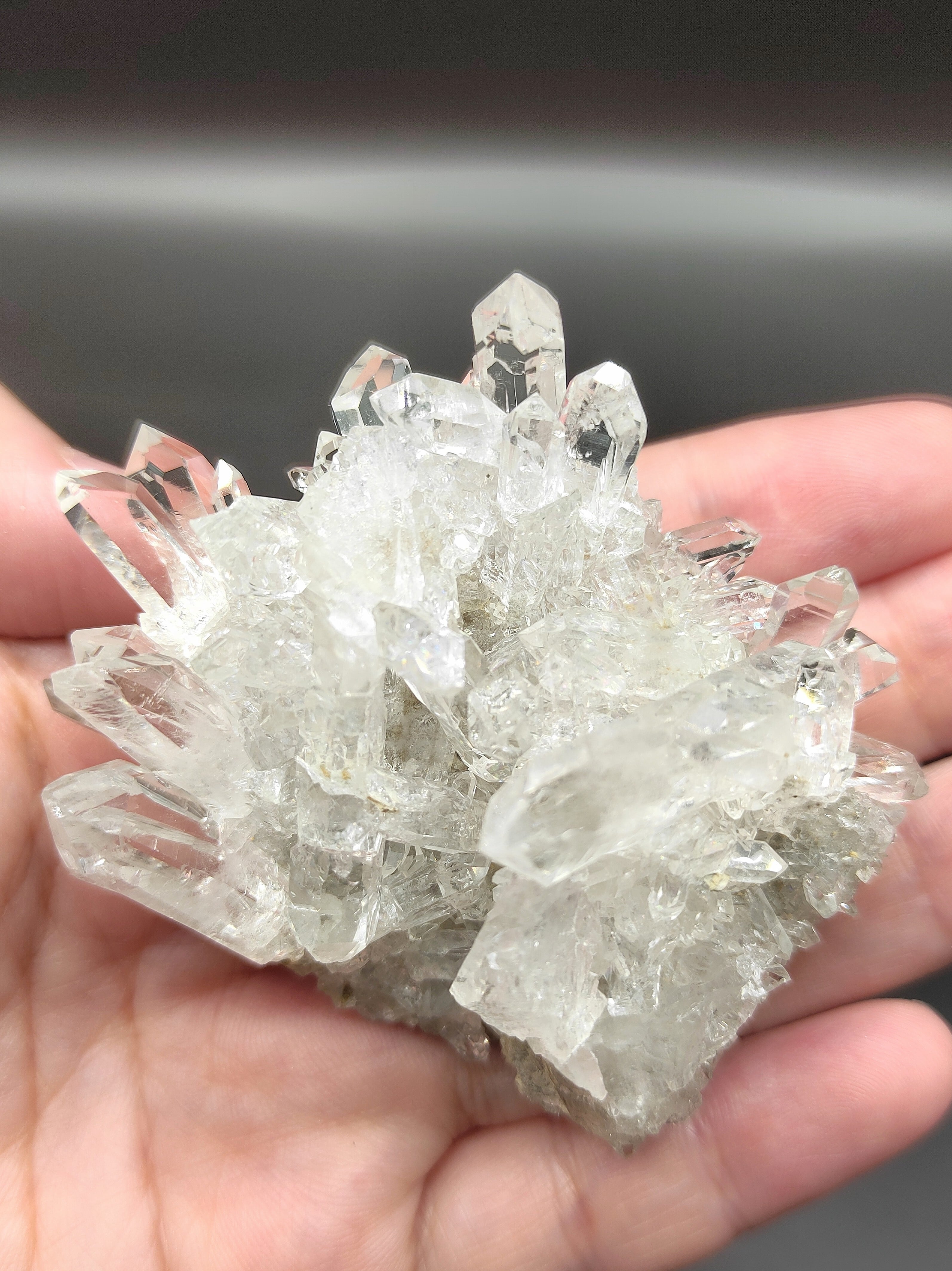 不幸にも水没によって無に帰すところ、2021年終わりにようやく大量の水を取り除き、採掘が再開されました。今回の水晶クラスターは、採掘が再開されてからのものになります。鉱床が小さく不安定なため、採掘量も非常に限られており大変貴重な人気の水晶です。