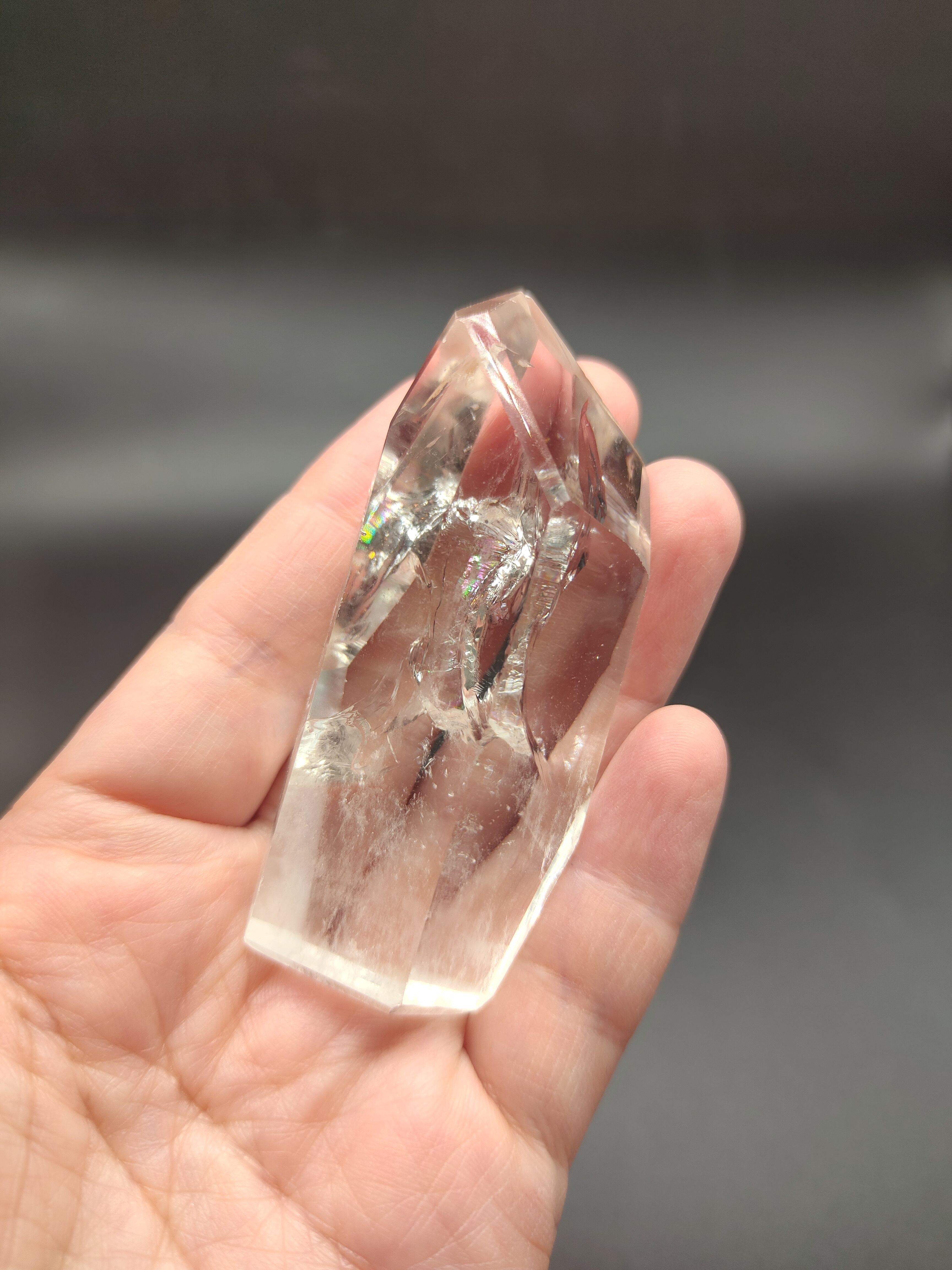 ブラジル産のクラックアイリスクオーツです。ランダムにカット研磨されたクリアな水晶で、内部にはレインボーを眺めることができます。