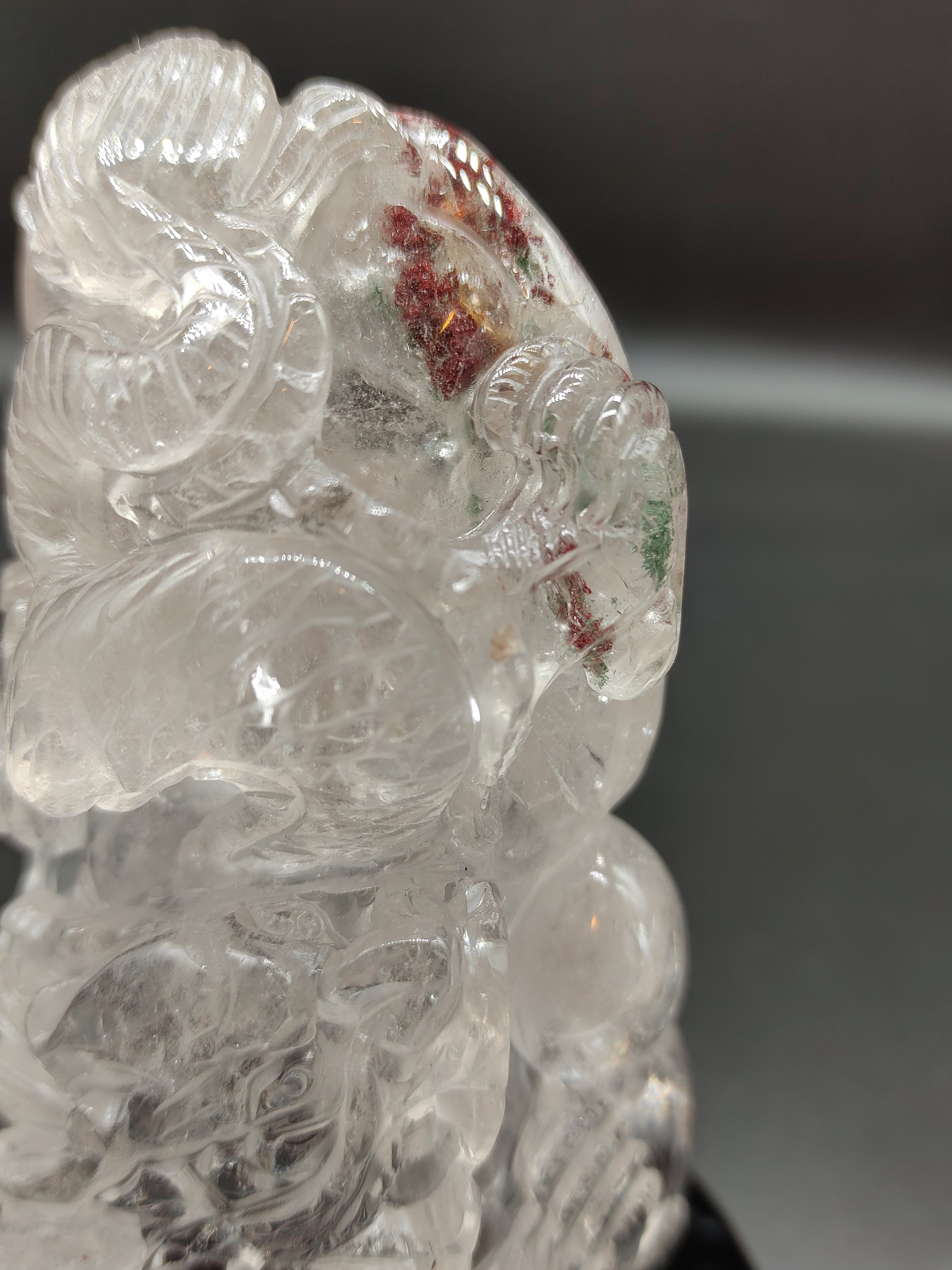 中国の石は種類を問わず、勝負運や地位名誉運、財運に関して強いと感じます。龍神様は政財界にも信仰されている方が多いですが、ご加護により、ダイナミックな運の流れが巻き起こります。更にこちらは縁起の良い昇龍。今まさに、地から天へ登っていこうとする龍神様が彫られております。